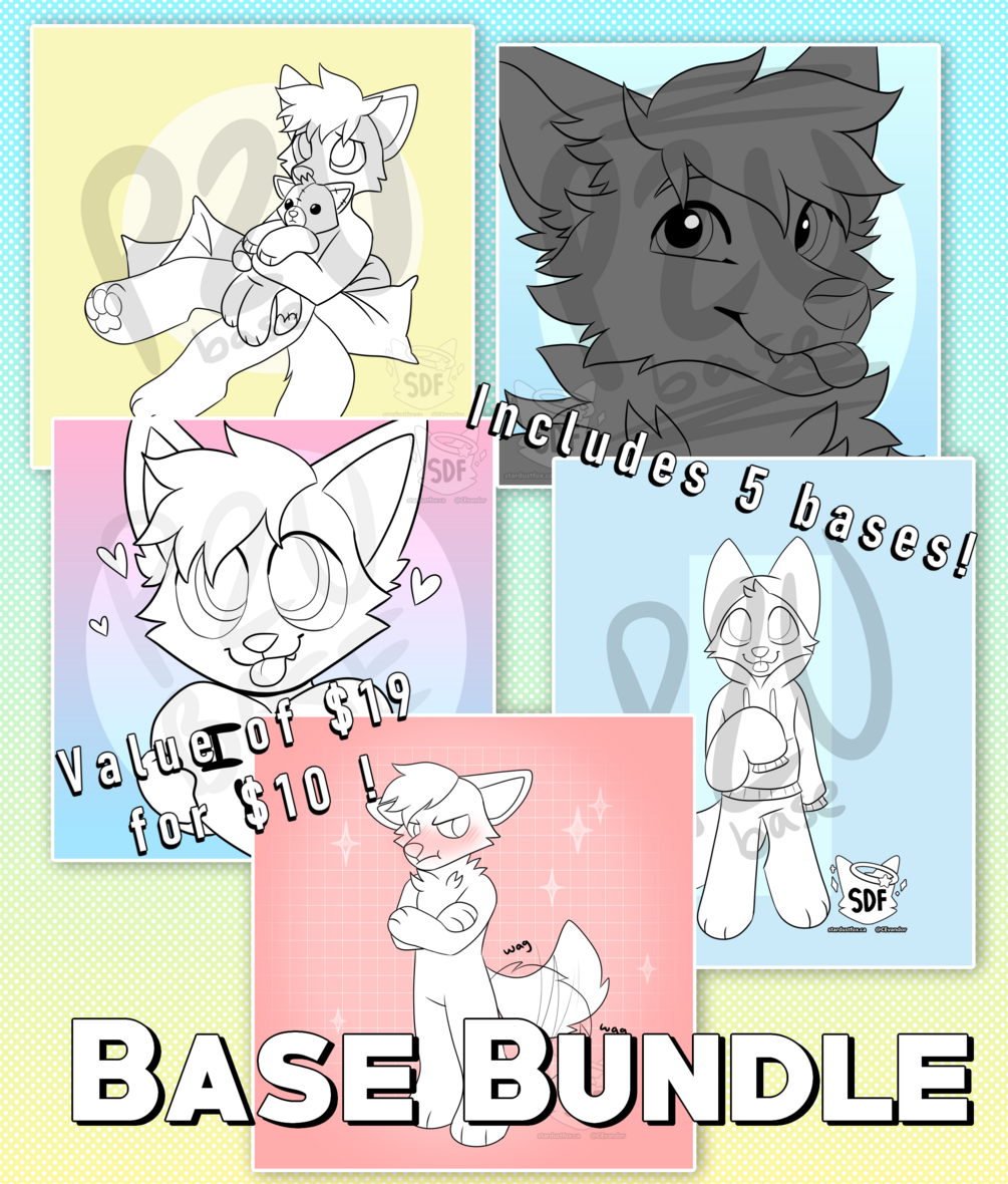 3. An adorable blushy pout base! Comes with 6 base linearts, 2 hair linearts + 2 horns and antlers. Blush is optional as well! (Canine, feline, bunny [ears up], bunny [ears down], deer, and a blank base you can add your own tail/ears/nose to!) You can mix and match each part however you'd like.